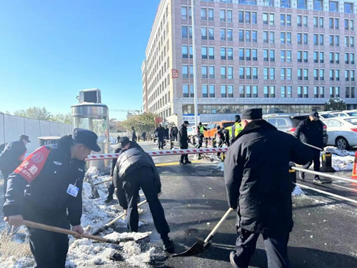 雪情就是命令,職責(zé)就是使命。為保障醫(yī)院各區(qū)域工作安全有序開展,全體保安員發(fā)揚(yáng)保安集團(tuán)吃苦耐勞、頑強(qiáng)拼搏的戰(zhàn)斗精神,團(tuán)結(jié)協(xié)作,不懼嚴(yán)寒,齊心協(xié)力,配合默契,鏟冰除雪,干得熱火朝天。雖然風(fēng)雪交加,打濕了他們的衣帽,但醫(yī)院各主要入口、主干道等重點(diǎn)工作區(qū)域的積雪得到了及時(shí)有效的清理,保障了醫(yī)院工作安全有序開展,也為醫(yī)患出行提供了安全保障,保安員們的熱情和團(tuán)結(jié)的力量讓這個(gè)寒冷的冬日變得格外溫暖。