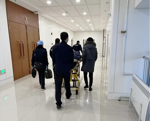 就在醫(yī)生對發(fā)病男子進行初步救治時,呂偉和其他保安隊員已經(jīng)開始著手安排下樓的相關(guān)事宜了。電梯口、轉(zhuǎn)彎處、大門口,保安員在途經(jīng)路線做好了守護和安全指引,同時提前打開了一樓大門,由保安員在此值守,確保接應(yīng)順暢。不多時,救援人員抬著擔(dān)架,一路暢通的到達了一樓,將患者及時轉(zhuǎn)運送醫(yī)。
